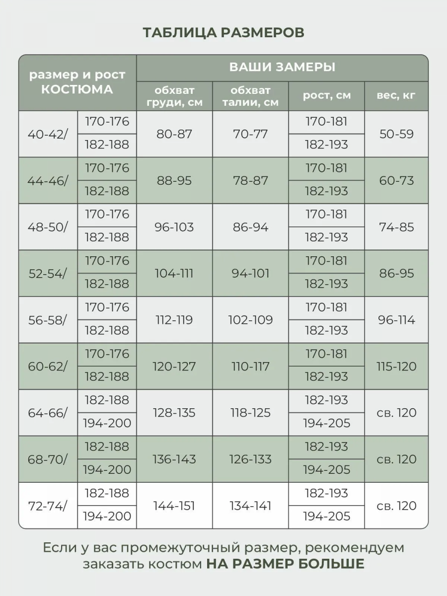 Таблица размеров